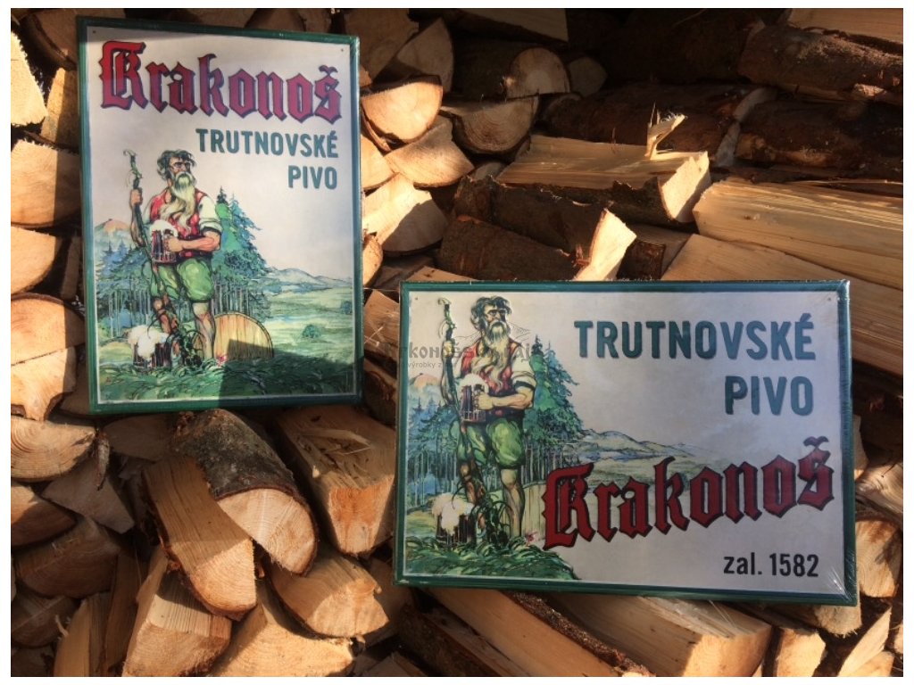 Reklamní plechová cedule trutnovského pivovaru Krakonoš, možno objednat ceduli na šířku nebo na výšku. (nutno uvést do poznámky).