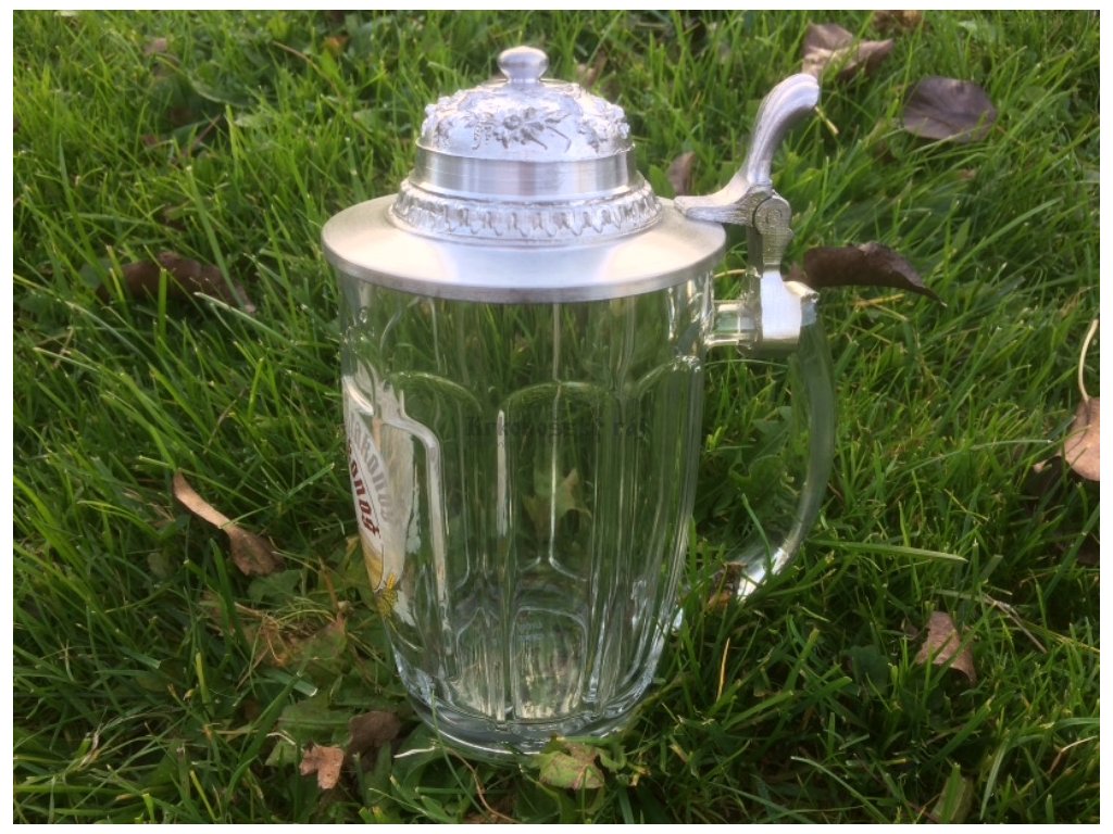 Skleněný korbel na pivo s uchem a cínovým víčkem s logem trutnovského pivovaru Krakonoš. Jednoduchý, širší, rustikální tvar zaručuje praktické používání korbelu. V letních měsících oceníme i cínové víčko. Jedná se o skvělý dárek z horského regionu a také o sběratelský kousek.
