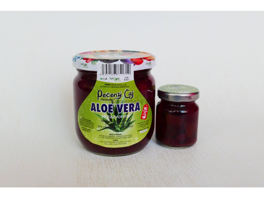 Nápojový koncetrát s kousky ovoce pro výrobu ovocného pečeného čaje s příchutí Aloe Vera a zázvoru. Čaj je vyráběn podle starých poctivých receptur bez přídavku chemických látek. Aloe a zázvor? Snad už není zdravějšího spojení pro náš organismus, závor zahřeje a Aloe uzdraví tělo i mysl. Rodinné balení stačí pro přípravu až 10 šálků lahodného nápoje.