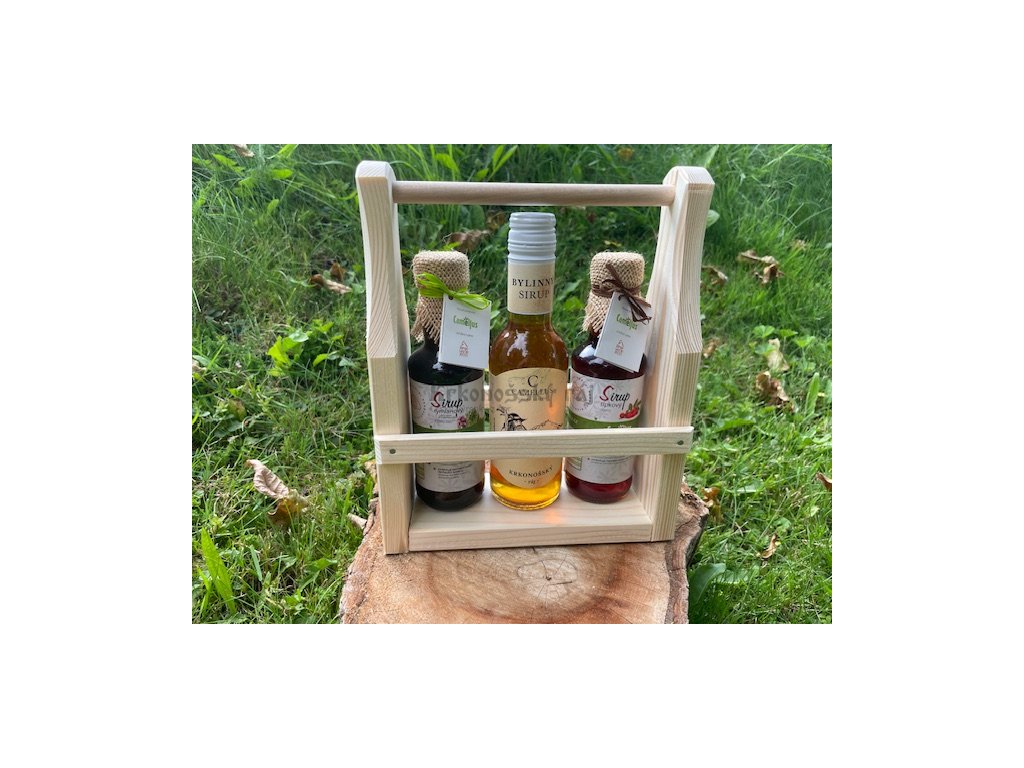Speciální edice dárkového balení v originální dřevěném nosiči. Sada obsahuje 3 ks bylinného sirupu Camellus o obsahu 0,2 l, dle vašeho výběru.