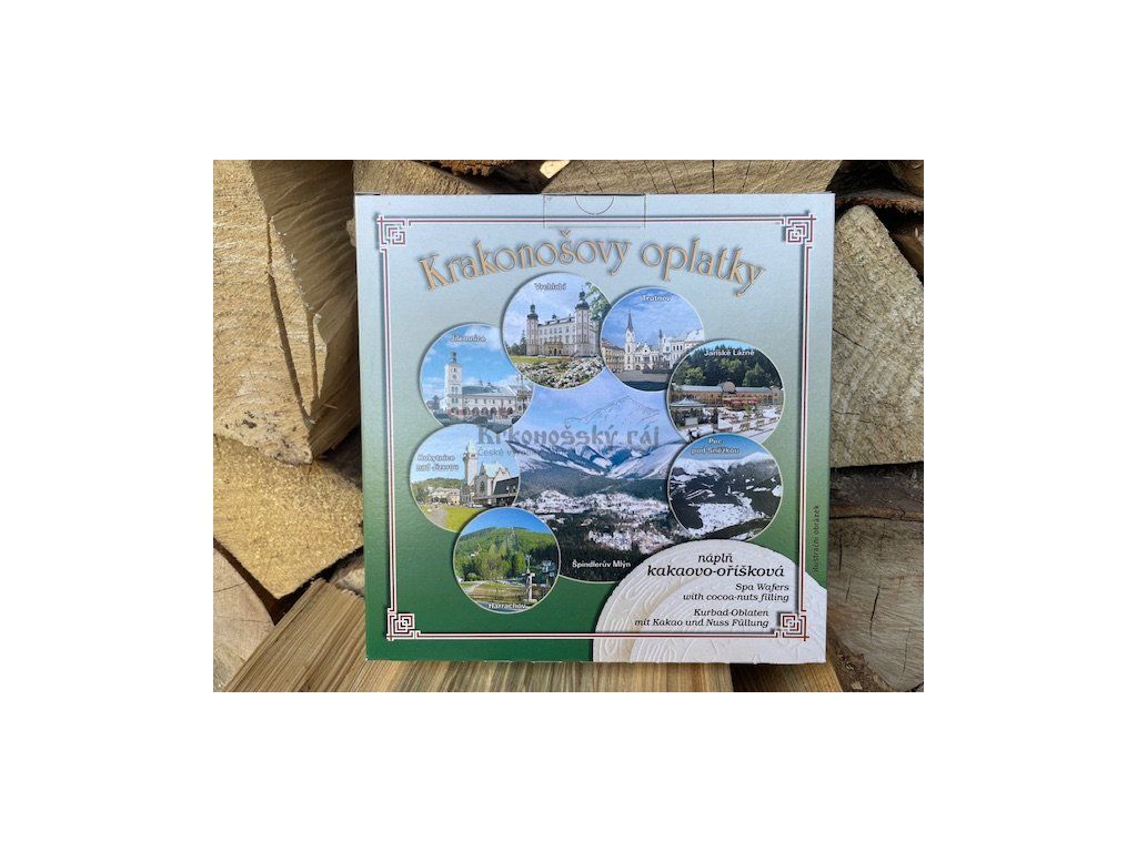 Křehké kulaté tenké plátky oplatky plněné jemnou směsí s příchutí kakaa a oříšků s nezaměnitelnou vůní a typickým křupnutím. Stále se jedná o ruční výrobu přímo v Luhačovicích, kdy náplň tvoří až 70% obsahu. Oplatky se honosí Krakonošovou pečetí, která je zárukou kvality a čerstvosti.